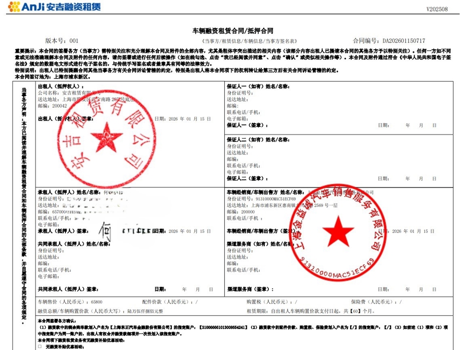 安吉融资租赁协议中写有,何女士所参与的,是融资租赁中的“售后回租”模式。